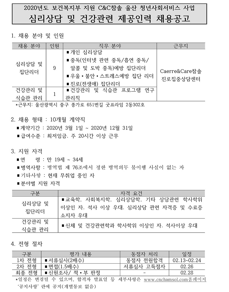 2020³â º¸°Çº¹ÁöºÎ Áö¿ø C&CÂü¼Ö ¿ï»êû³â»çȸ¼ºñ½º»ç¾÷´Ü ÀηÂä¿ë°ø°í